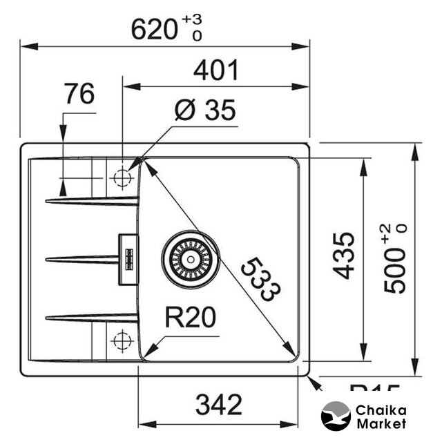 Ширина мойки | 62 см |