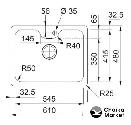 врезная под столешницу, искусственный камень, размеры: 54.3x45.6 см, глубина чаши: 20 см, в шкаф шириной от 60 см