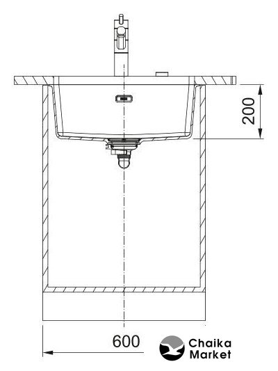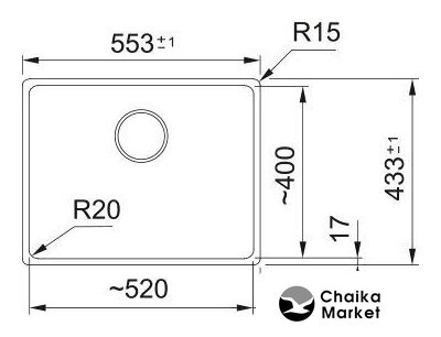 врезная под столешницу, искусственный камень, размеры: 55.3x43.3 см, глубина чаши: 20 см, в шкаф шириной от 60 см, клапан-автомат