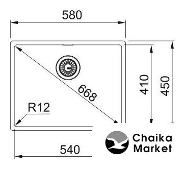 врезная на столешницу/врезная под столешницу, нержавеющая сталь, фактура: матовая, размеры: 45x54 см, глубина чаши: 20 см, в шкаф шириной от 60 см