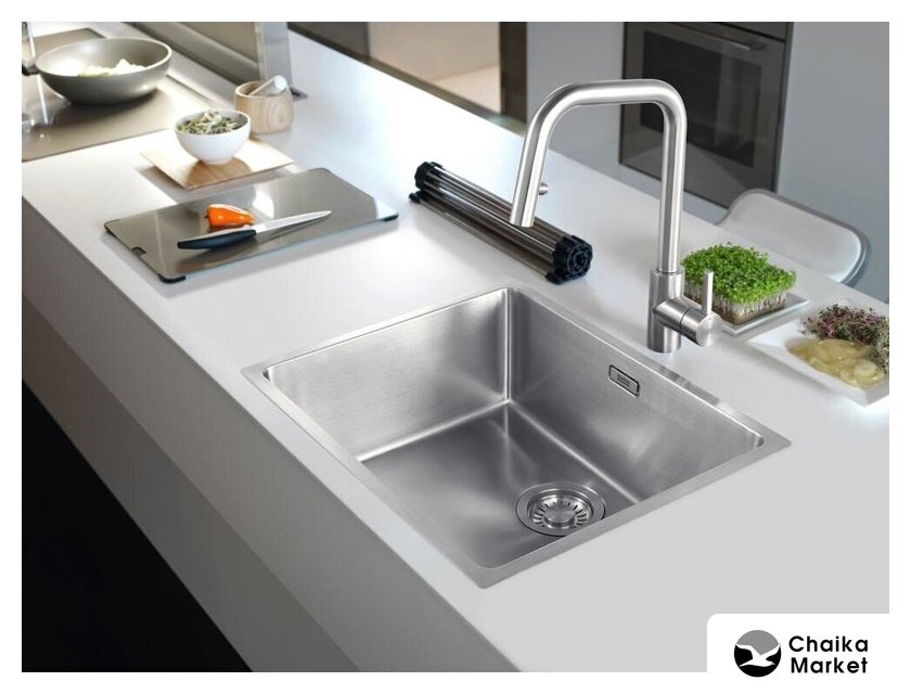 врезная на столешницу, нержавеющая сталь, фактура: сатин, размеры: 55x51 см, глубина чаши: 20 см, в шкаф шириной от 60 см