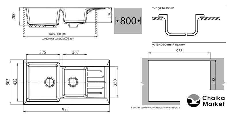 врезная под столешницу, искусственный камень, размеры: 55.5x46 см, глубина чаши: 19 см, в шкаф шириной от 60 см