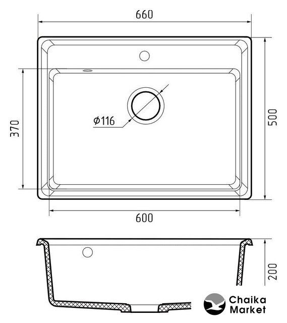 врезная на столешницу, искусственный камень, размеры: 66x50 см, глубина чаши: 20 см, в шкаф шириной от 50 см