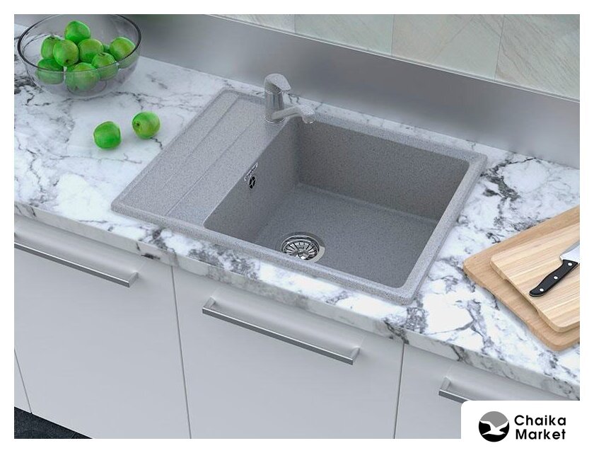 врезная на столешницу, искусственный камень, размеры: 58x49 см, глубина чаши: 18 см, в шкаф шириной от 60 см