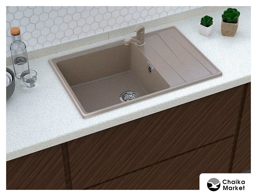 врезная на столешницу, искусственный камень, размеры: 76x50 см, в шкаф 60 см