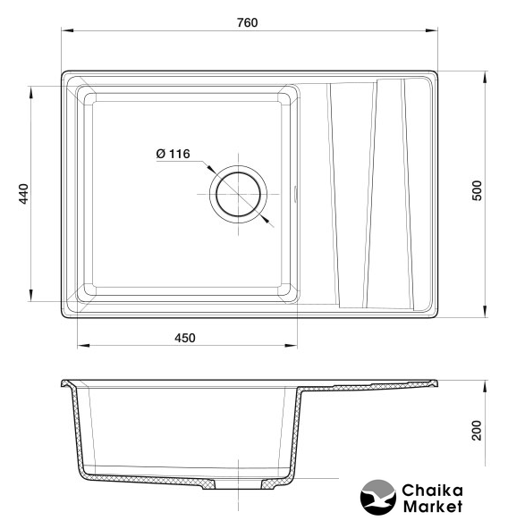 | Ширина мойки | 76 см |