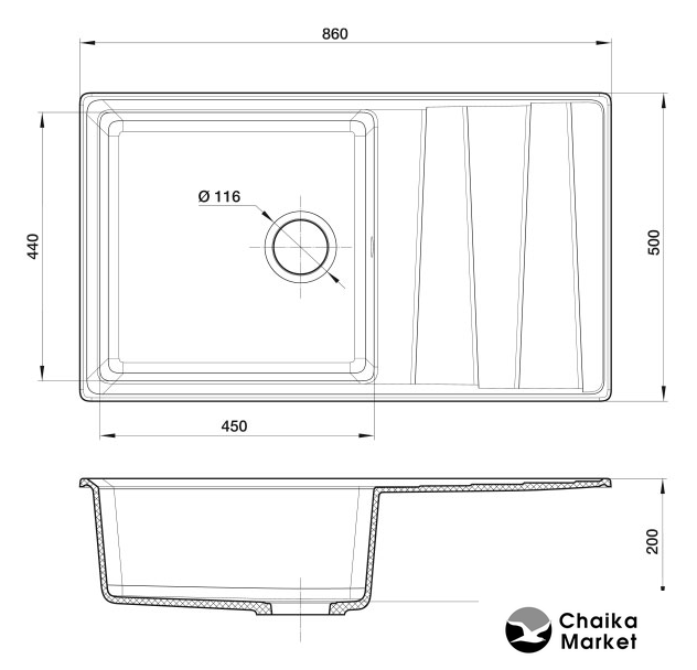 врезная на столешницу, искусственный камень, размеры: 58x49 см, глубина чаши: 18 см, в шкаф шириной от 50 см