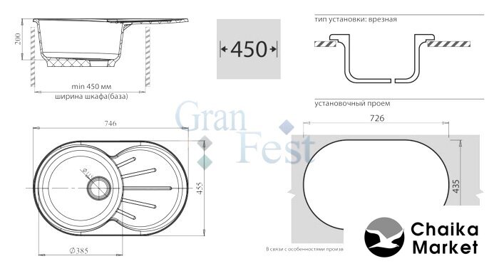 врезная на столешницу, искусственный камень, размеры: 74.6x45.5 см, в шкаф 50 см