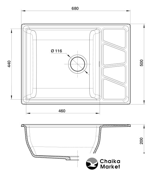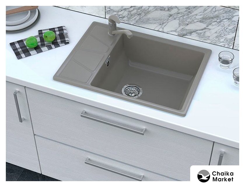 врезная на столешницу, искусственный камень, размеры: 76.4x49.5 см, глубина чаши: 20 см, в шкаф шириной от 60 см