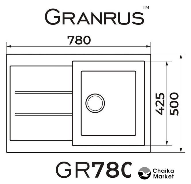 врезная на столешницу, искусственный камень, размеры: 78x50 см, в шкаф 45 см