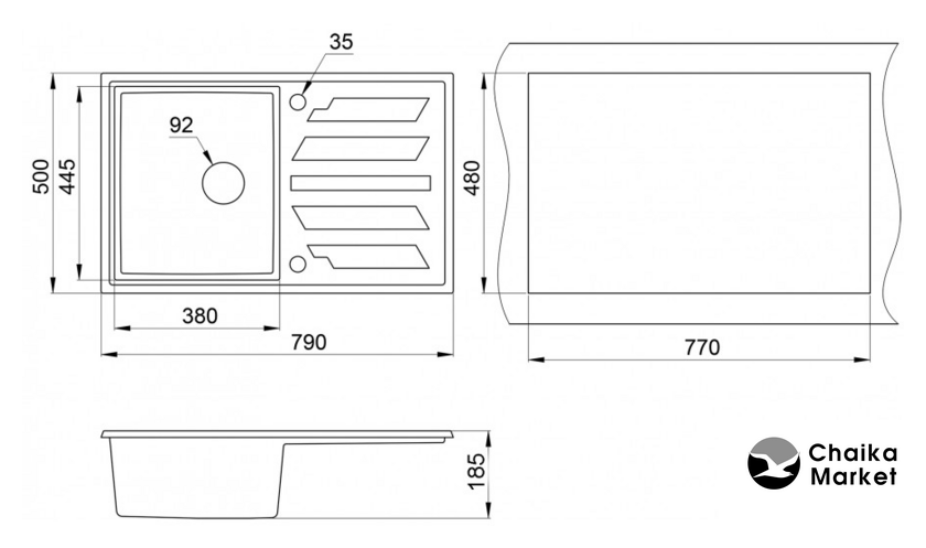 врезная на столешницу, искусственный камень, размеры: 79x50 см, в шкаф 50 см