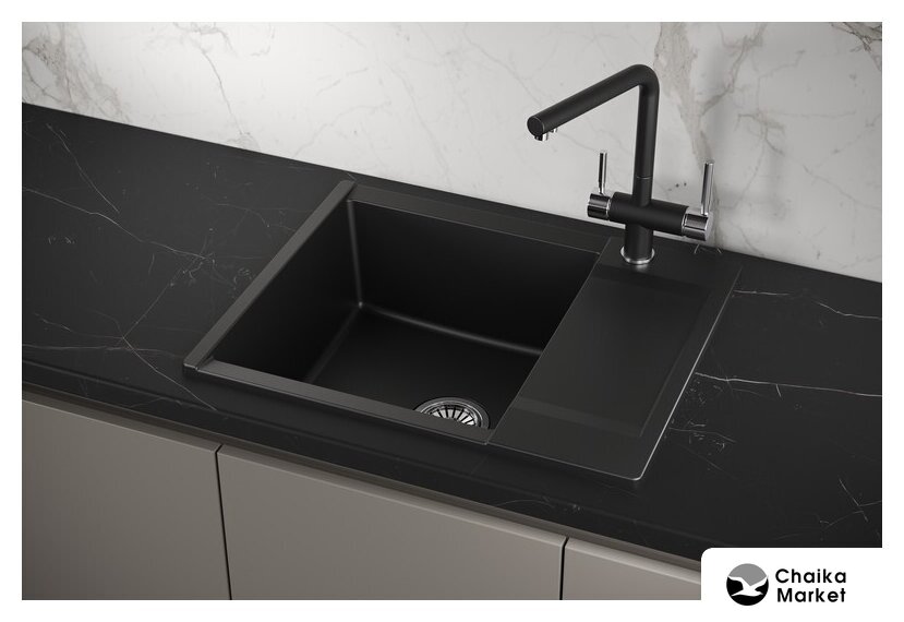 врезная на столешницу, искусственный камень, размеры: 55.5x45.5 см, глубина чаши: 20 см, в шкаф шириной от 60 см, клапан-автомат