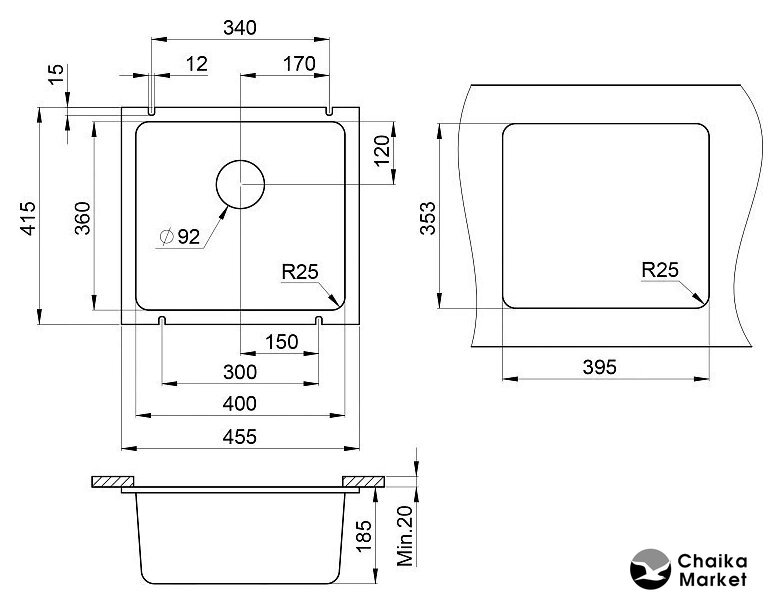 врезная на столешницу, нержавеющая сталь, фактура: матовая, размеры: 45x51 см, глубина чаши: 20 см, в шкаф шириной от 50 см