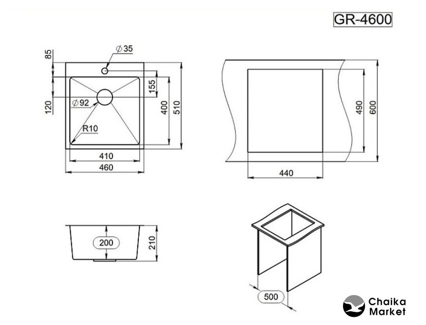 врезная под столешницу, нержавеющая сталь, фактура: сатин, размеры: 44x44 см, глубина чаши: 20 см, в шкаф шириной от 50 см