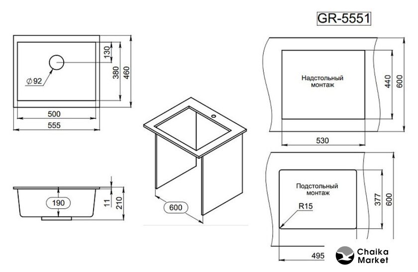Способ установки | врезная на столешницу, врезная под столешницу, врезная вровень со столешницей |