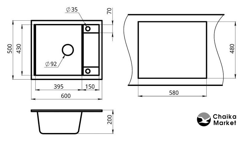 врезная на столешницу, искусственный камень, размеры: 60x50 см, в шкаф 50 см