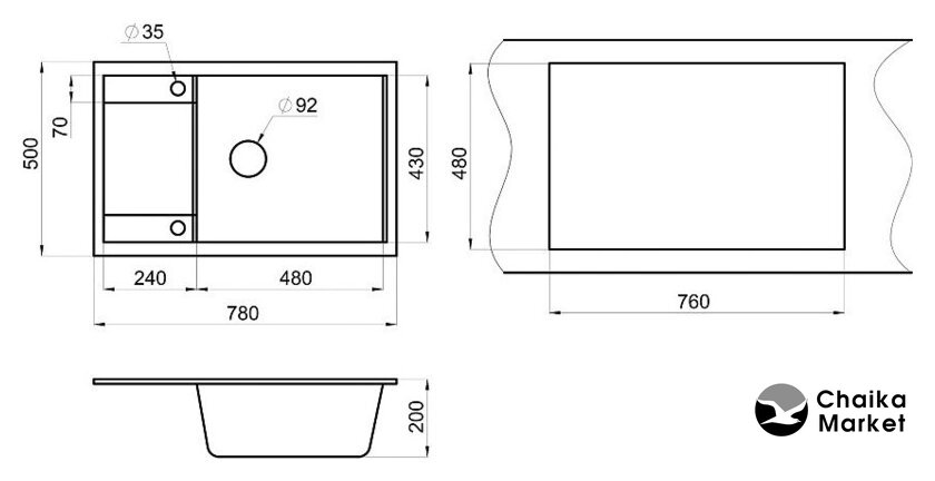 врезная на столешницу, гранит, размеры: 56x50.5 см, глубина чаши: 19.5 см, в шкаф шириной от 60 см