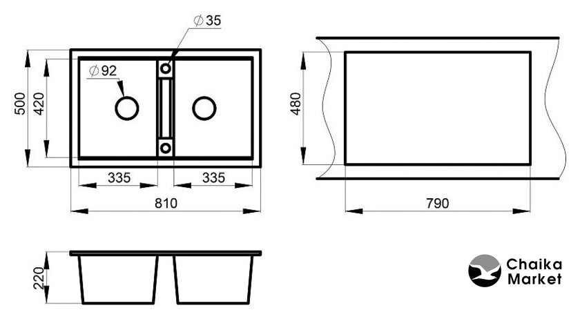 | Ширина мойки | 81 см |