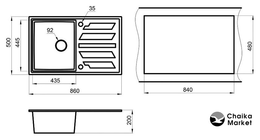 врезная на столешницу, искусственный камень, размеры: 86x50 см, в шкаф 60 см