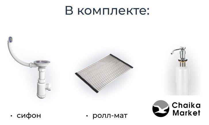 | Комплектация | Сифон, дозатор для жидкого мыла (нерж) и ролл-мат |