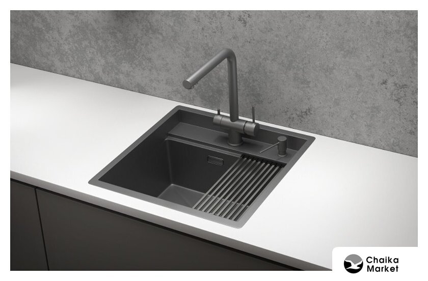 врезная под столешницу/врезная на столешницу/врезная вровень со столешницей, нержавеющая сталь, размеры: 44x48 см, глубина чаши: 20 см, в шкаф шириной от 50 см