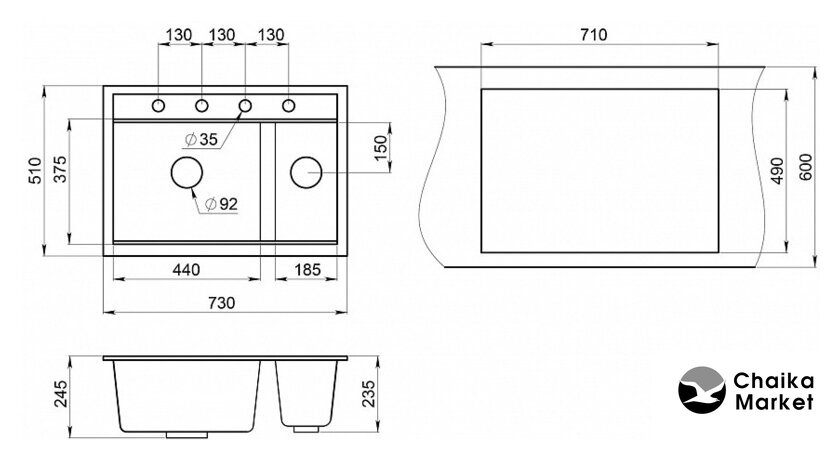 | Комплектация | Сифон, дозатор для жидкого мыла (нерж) и ролл-мат |