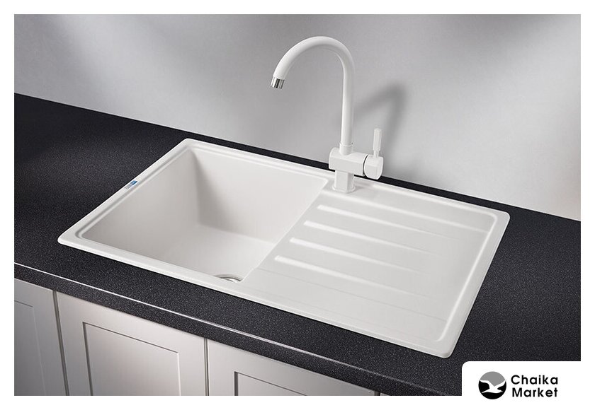 врезная на столешницу, искусственный камень, глубина чаши: 20 см, в шкаф шириной от 74 см