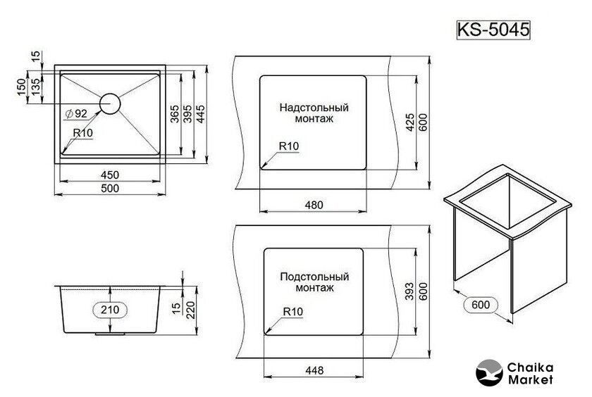 Комплектация | дозатор, сифон, крепления, сушка (ролл мат) |