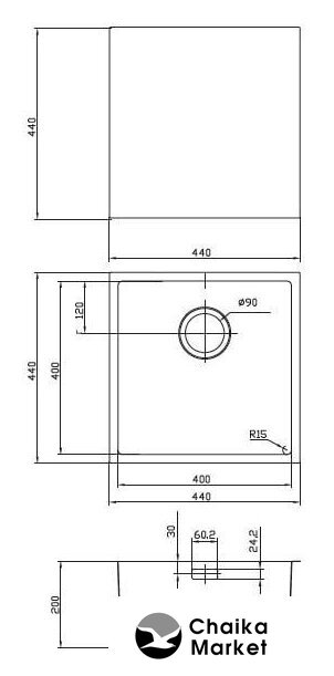 врезная на столешницу, искусственный камень, размеры: 60x51 см, глубина чаши: 24.5 см, в шкаф шириной от 60 см