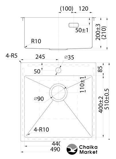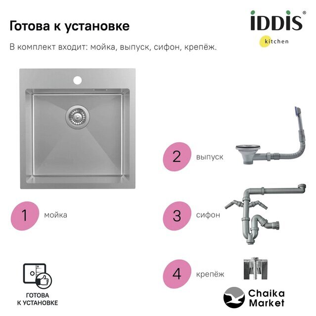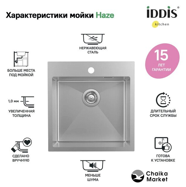 врезная на столешницу, нержавеющая сталь, фактура: сатин, размеры: 51x51 см, глубина чаши: 19 см