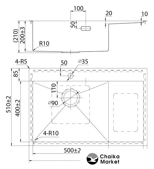 врезная на столешницу, искусственный камень, размеры: 99x50 см, глубина чаши: 21 см, в шкаф шириной от 60 см