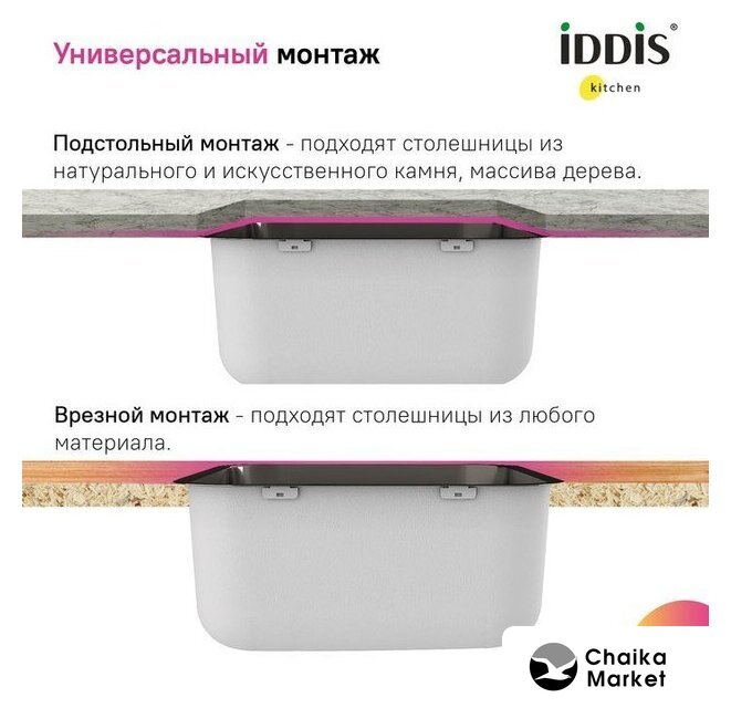 | Способ установки | врезная на столешницу, врезная под столешницу |