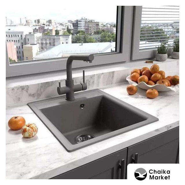 врезная на столешницу, нержавеющая сталь, фактура: матовая, размеры: 50x50 см, глубина чаши: 21.5 см, в шкаф шириной от 50 см, клапан-автомат