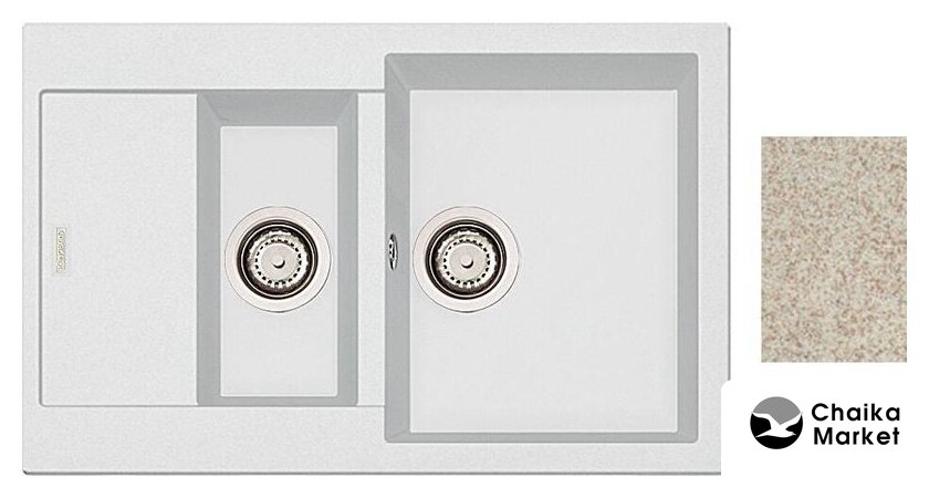 врезная на столешницу, искусственный камень, размеры: 78x50 см, глубина чаши: 20 см, в шкаф шириной от 60 см, клапан-автомат