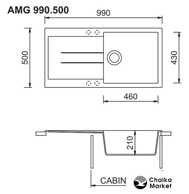 врезная на столешницу, искусственный камень, размеры: 99x50 см, в шкаф 60 см