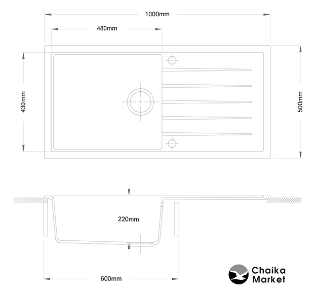 врезная на столешницу, искусственный камень, размеры: 100x50 см, в шкаф 60 см