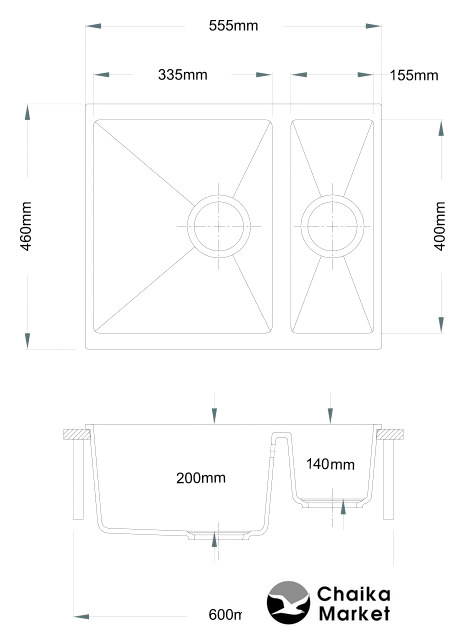 врезная под столешницу, искусственный камень, размеры: 55.5x46 см, в шкаф 60 см