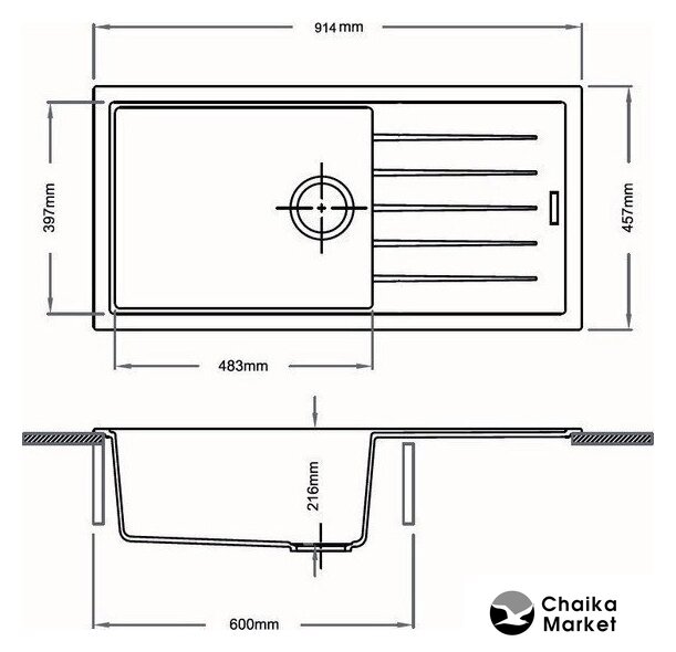 врезная под столешницу, искусственный камень, размеры: 72.4x45.4 см, глубина чаши: 22 см, в шкаф шириной от 80 см