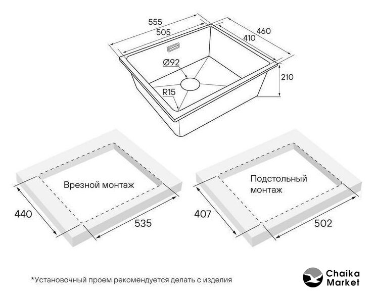 Способ установки | врезная на столешницу, врезная под столешницу, врезная вровень со столешницей |