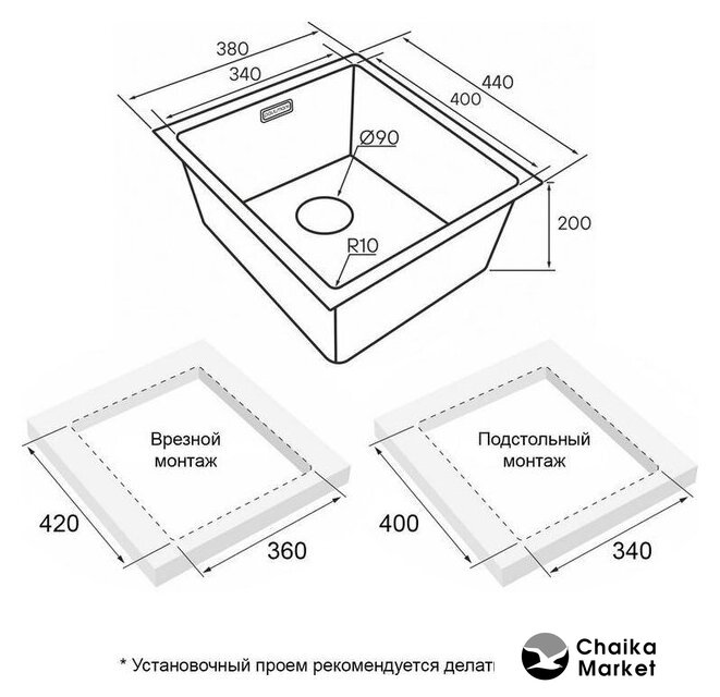 Способ установки | врезная на столешницу, врезная под столешницу |