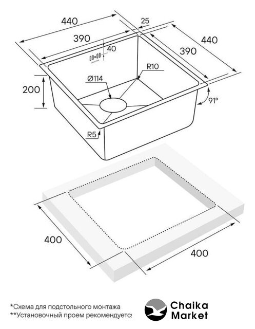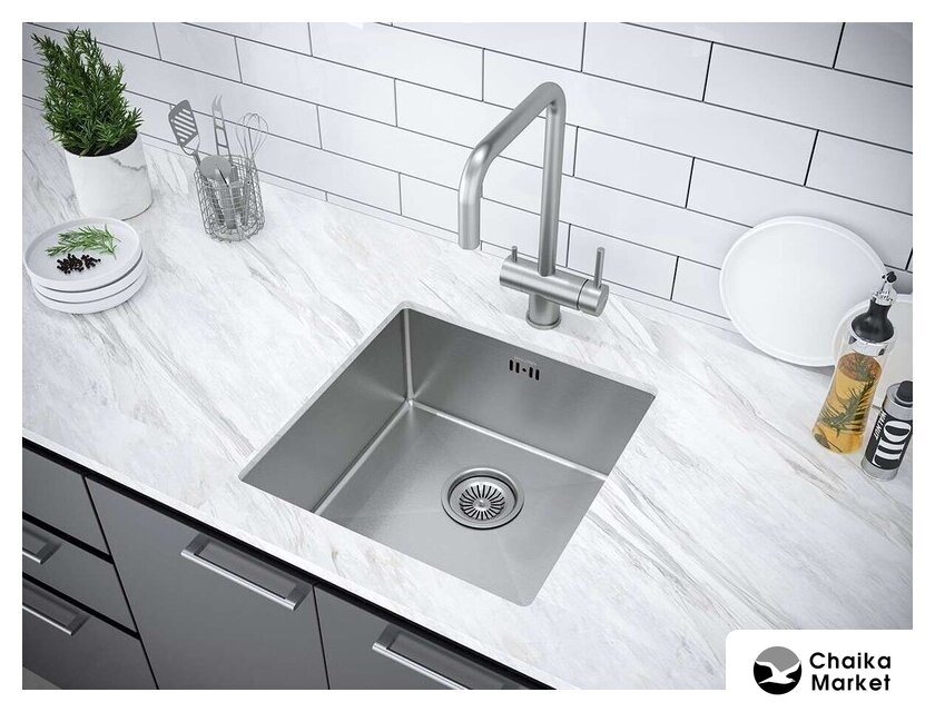 врезная на столешницу, нержавеющая сталь, фактура: матовая, размеры: 46x51 см, глубина чаши: 20 см, в шкаф шириной от 50 см