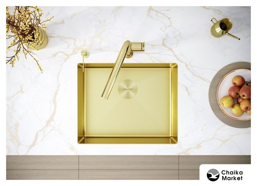 врезная под столешницу/врезная на столешницу/врезная вровень со столешницей, нержавеющая сталь, размеры: 44x48 см, в шкаф 50 см