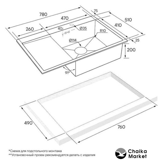 Способ установки | врезная на столешницу, врезная вровень со столешницей |
