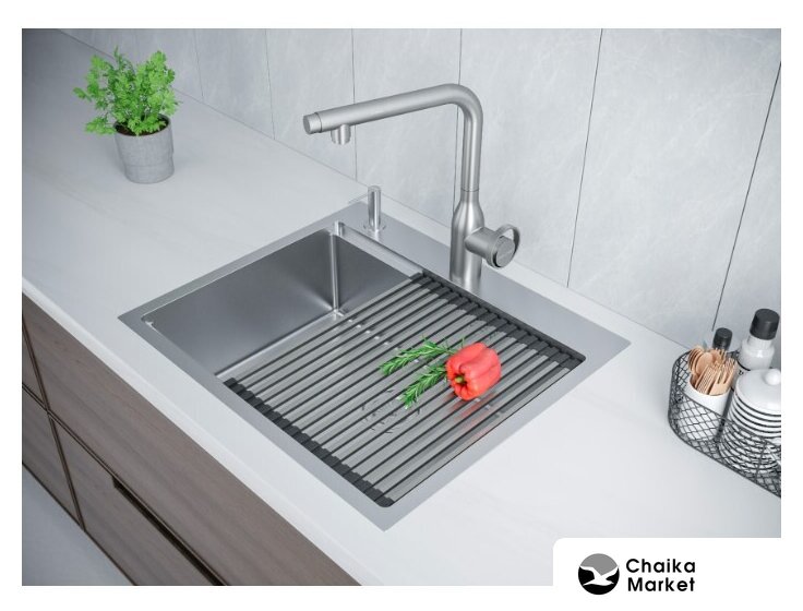 врезная на столешницу/врезная вровень со столешницей, нержавеющая сталь, размеры: 51x59 см, в шкаф 60 см