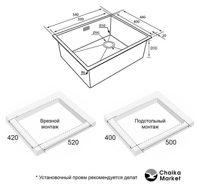 Способ установки | врезная на столешницу, врезная под столешницу, врезная вровень со столешницей |
