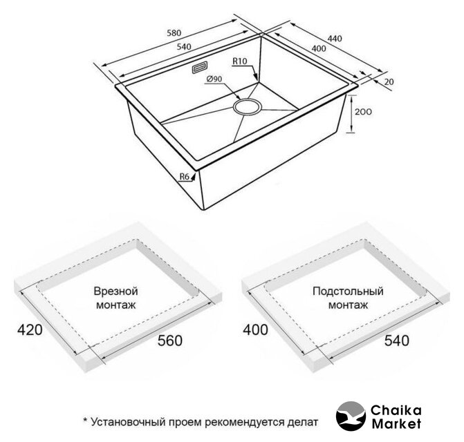 Способ установки | врезная на столешницу, врезная под столешницу, врезная вровень со столешницей |