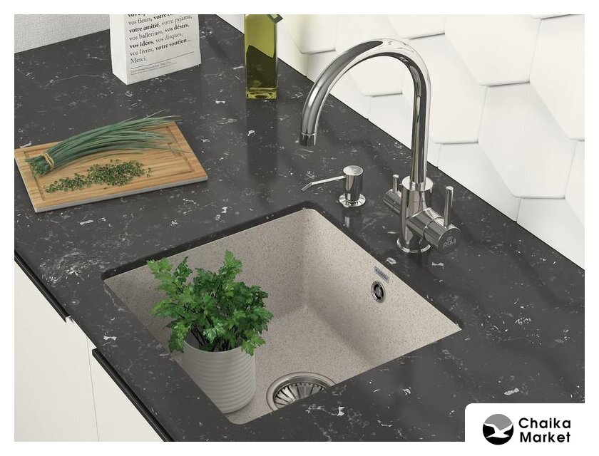 врезная на столешницу/врезная под столешницу/врезная вровень со столешницей, искусственный камень, размеры: 45x46 см, в шкаф 50 см