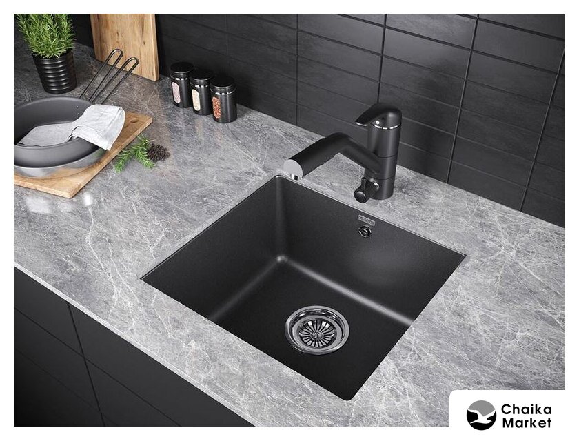 врезная на столешницу, гранит, фактура: матовая, размеры: 44x67 см, глубина чаши: 16.3 см, в шкаф шириной от 50 см
