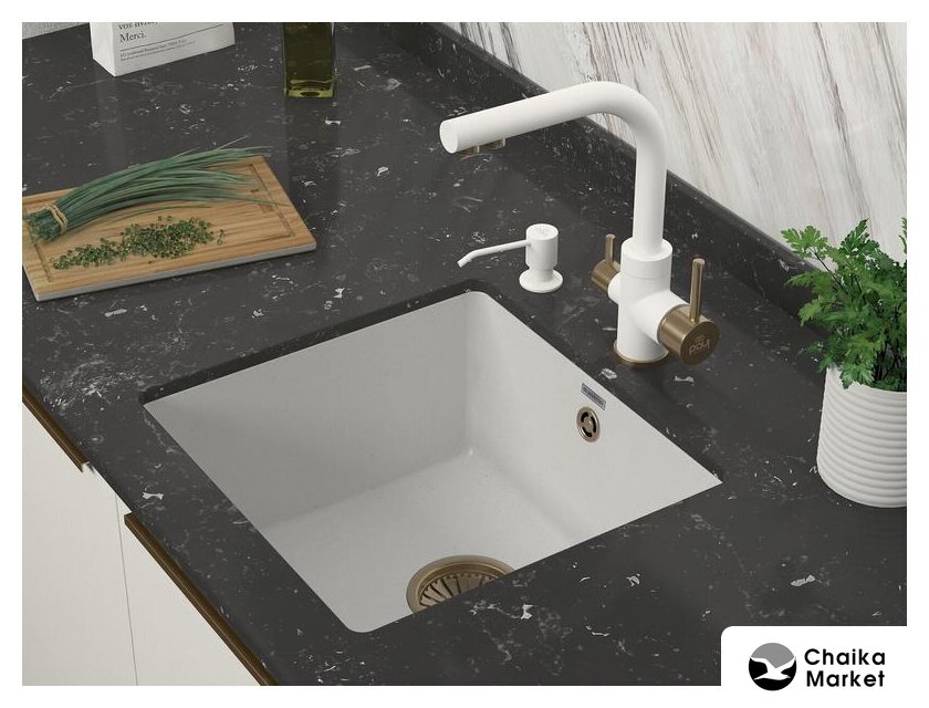 врезная на столешницу/врезная под столешницу/врезная вровень со столешницей, искусственный камень, размеры: 45x46 см, в шкаф 50 см