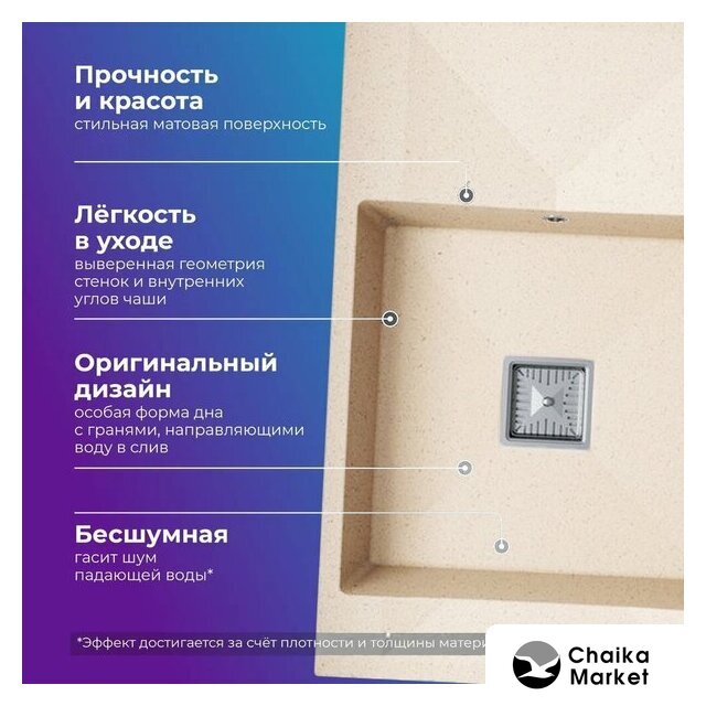 врезная на столешницу, искусственный камень, размеры: 58x49 см, глубина чаши: 18 см, в шкаф шириной от 50 см